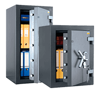 Предназначены для хранения денег, ценностей, важных документов частными лицами и организациями. Комплектуются ключевым либо электронным замком. У замков и ригелей есть защита от высверливания и выбивания. Возможно анкерное крепление к полу. Взломостойкость сейфов обеспечивается с помощью входящего в состав армированного бетона и других материалов.