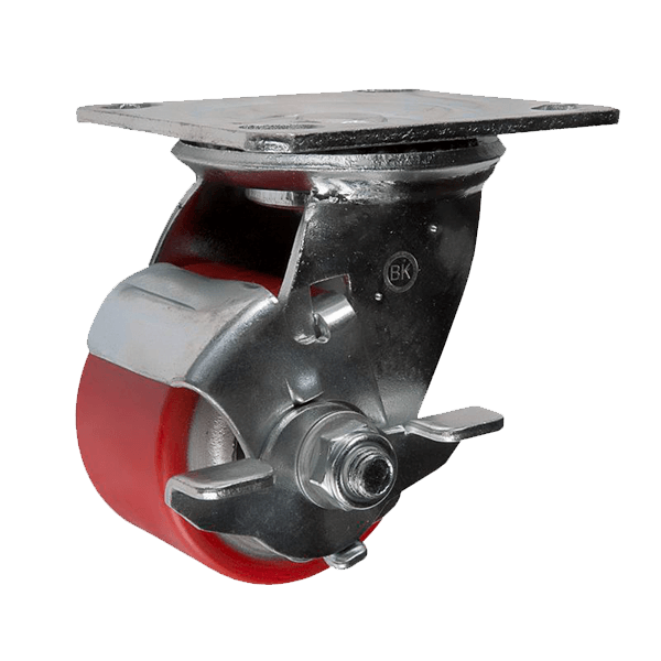 Колесо большегрузное поворотное с тормозом (полиуретан) диаметр 125 мм