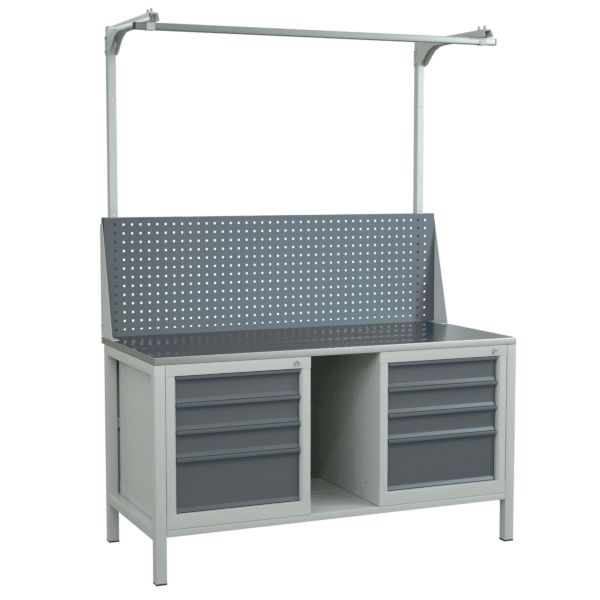 Верстак 1500 на 2 тумбы с экраном с консолями