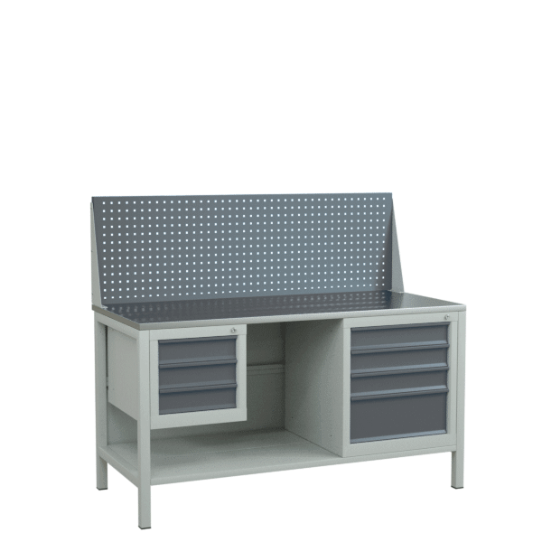 - Корпусы верстака и тумб выполнены в сером цвете (RAL 5012).