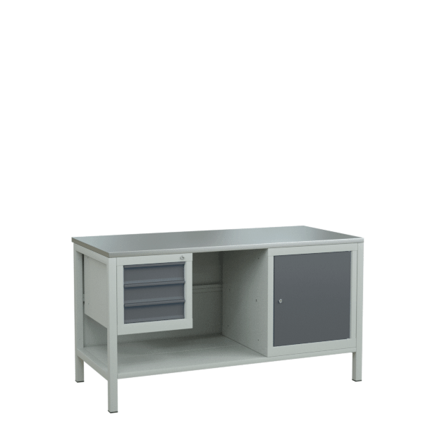 - Каркас верстака и тумбы окрашены в серый цвет по стандарту RAL 5012.