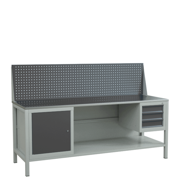 Верстак 2000 с экраном, распашной тумбой и подвесной тумбой с 3 ящиками