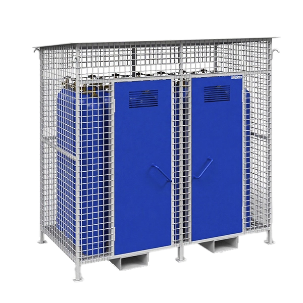 - Клеть разделена на два отделения с дверьми. Двери оснащены накладным замком БИФ. Модель не предусматривает внутренних креплений для фиксации баллонов.