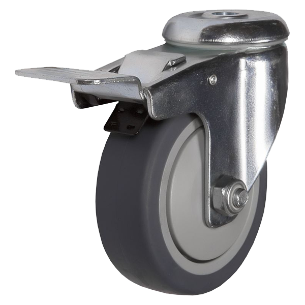 Аппаратное колесо термопластичная резина под болт с тормозом 100 мм