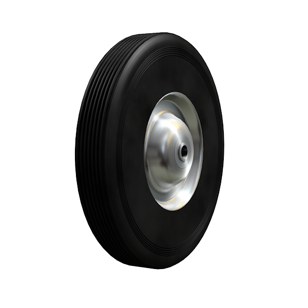 - Колеса промышленные с литой черной резиной и стальным прессованным цельным ободом отличаются хорошими амортизационными качествами, низким сопротивлением качению при плохих дорожных условиях.