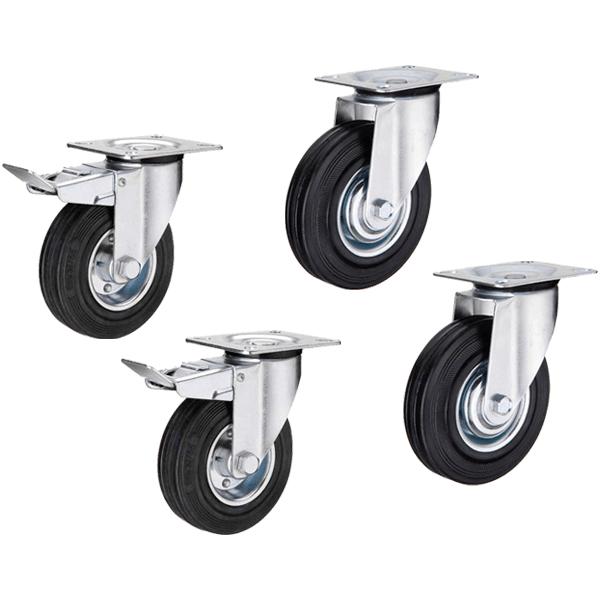 - Комплект состоит из 2 поворотных и 2 неповоротных колёс.