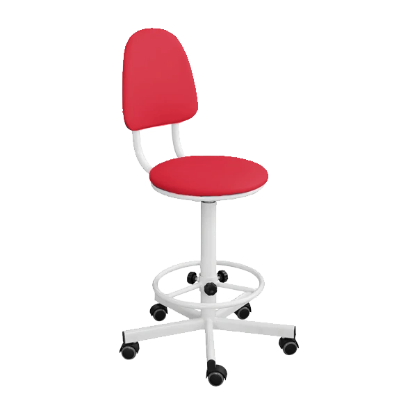 - Кресло на винтовой опоре с регулируемой опорой для ног КР02/К, цвет красный, каркас белый — удобное и практичное решение для медучреждений, салонов красоты, лабораторий и других профессиональных пространств.