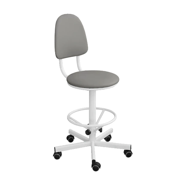- Промышленный стул КР03/К (на колесах), обивка светло-серая, каркас белый идеально подходит для использования в производственных помещениях, лабораториях, офисах и других рабочих местах, где важно сочетание надежности и комфорта.