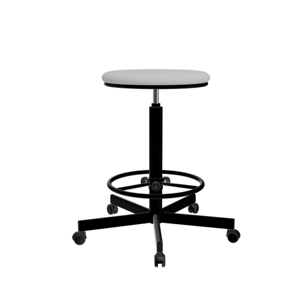 - Табурет на винтовой опоре обивка белая Т02/К каркас черный – стильное и удобное решение для работы и отдыха.