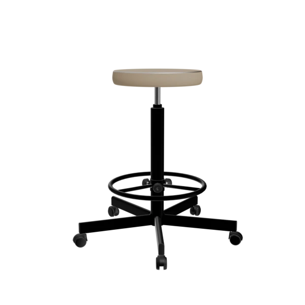 - Табурет на винтовой опоре обивка кремовая Т02-1/К каркас черный – универсальная модель для медицинских кабинетов, лабораторий, косметологических салонов и офисных помещений.