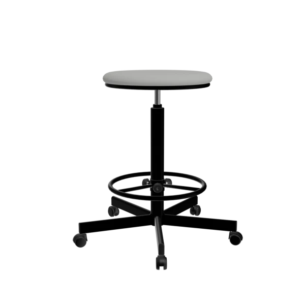 - Табурет на винтовой опоре обивка светло-серая Т02/К каркас черный – стильное и универсальное решение для рабочих и бытовых помещений.