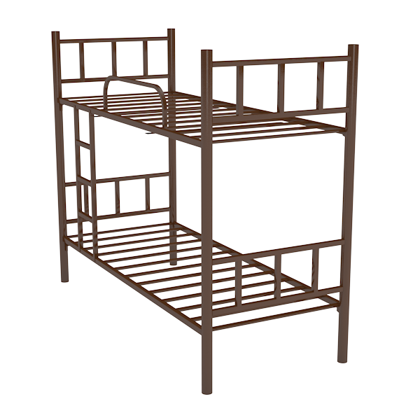 - Двухъярусная кровать на металлических ламелях с лестницей и ограждением.