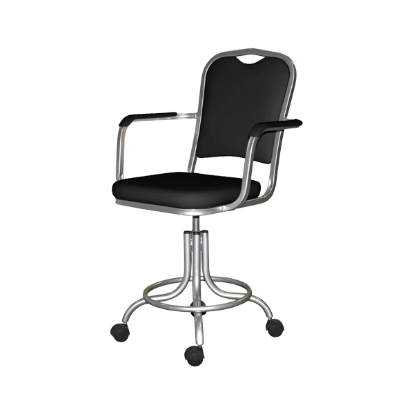 - Оснащено нерегулируемой спинкой и подлокотниками.