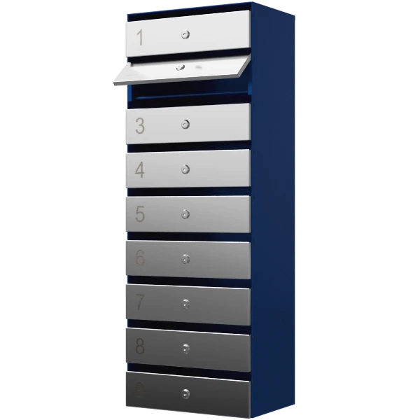 - Каждая ячейка оснащена индивидуальным почтовым замком; к каждому замку прилагается комплект из двух ключей.
