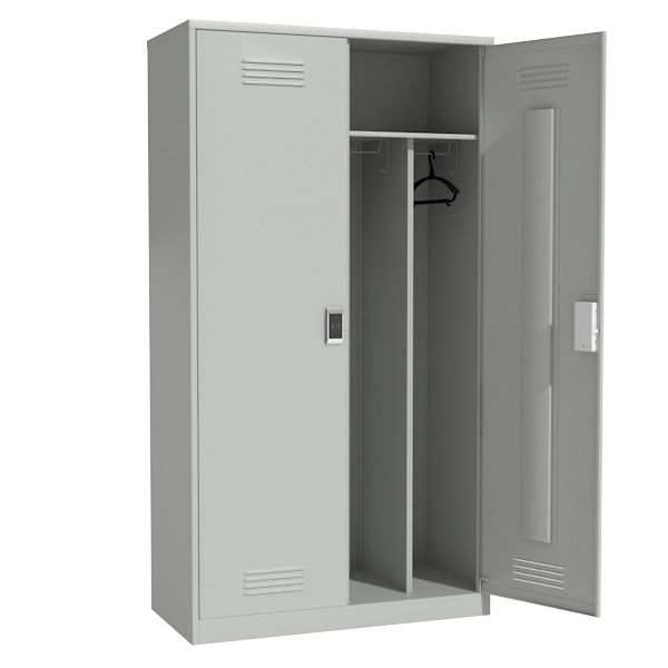 - Каждая секция разделена перегородкой на два отделения: под чистую и грязную одежду.