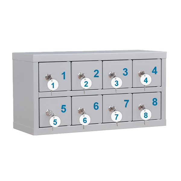 - 8 ячеек с индивидуальными ключевыми замками почтового типа либо с кодовым замком.