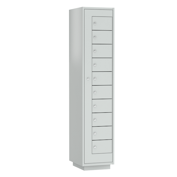 - Состоит из 10 одинаковых ячеек, каждая из которых оснащена ключевым замком.