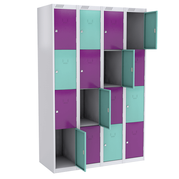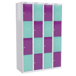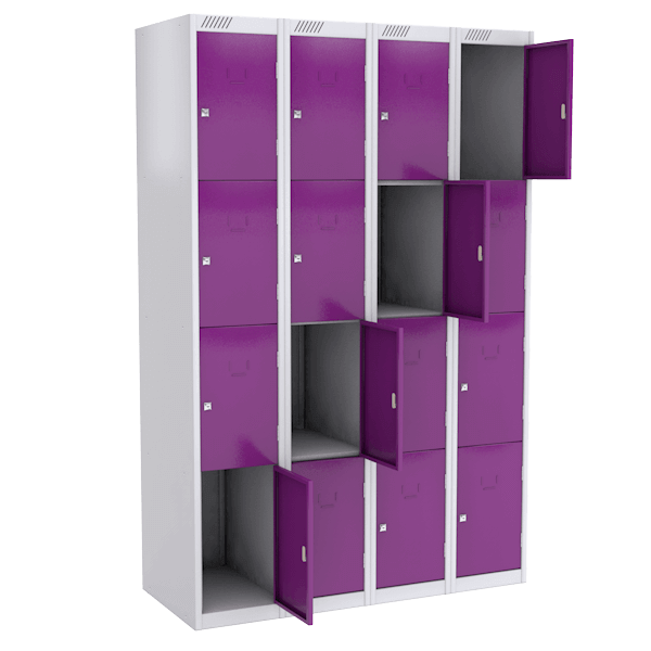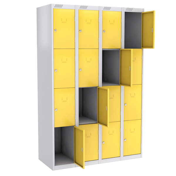 - Шестнадцать металлических дверок. На дверцах расположены держатели для карточки или номерка.