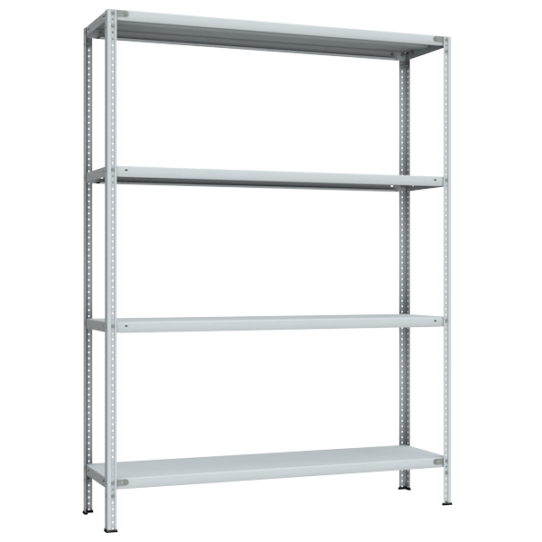 - Конструкция состоит из перфорированных стоек, полок и пластиковых подпятников.