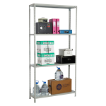 - Каркас выполнен из металлических стоек с угловым профилем сложного сечения 30×30 мм, что повышает жёсткость и устойчивость конструкции. Полки имеют боковое ребро жёсткости высотой 33 мм, выдерживают до 100 кг каждая.