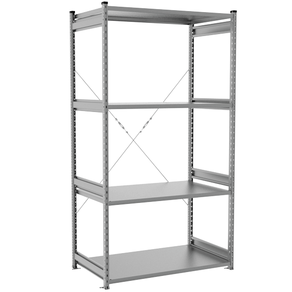 - Минимальное количество полок – 4 (при комплектации полки ребром жёсткости нагрузка на полку увеличивается до 250 кг).