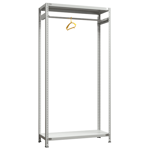 - Комплектуется двумя полками и одним ярусом-вешалом со штангой.
