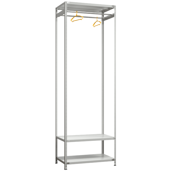 - Высота полок регулируется через перфорацию в стойках, с шагом 25 мм.