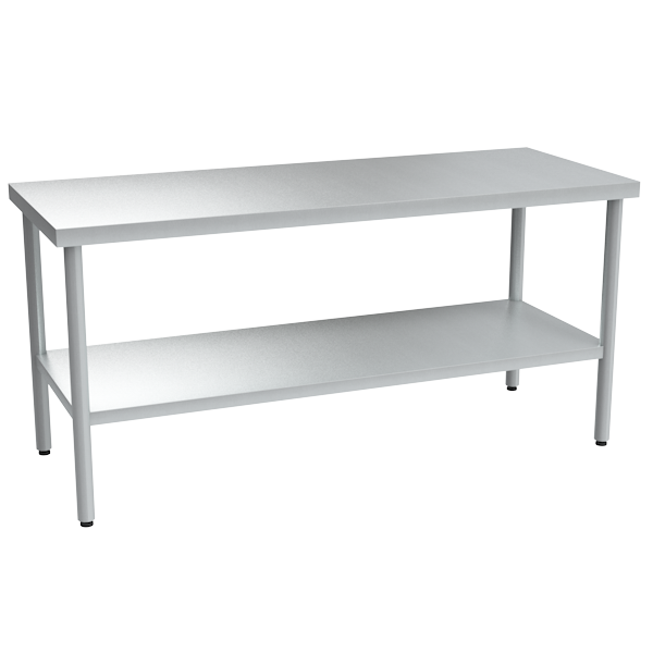 - Стол из нержавеющей стали для бистро 870×1800×700 — прочный и гигиеничный рабочий стол, предназначенный для интенсивной эксплуатации в кафе, мини-кухнях, точках быстрого питания и других заведениях общепита.