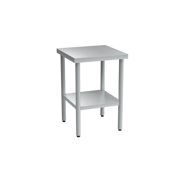 - Стол комплектуется сплошной полкой из нержавеющей стали 0,8 мм.