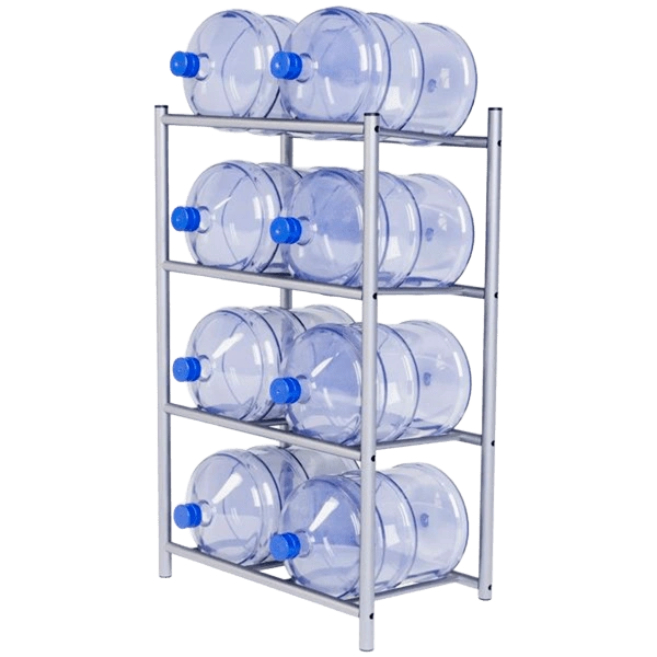 - Предназначен для хранения 19-литровых бутылей с водой или другими жидкостями на предприятиях.