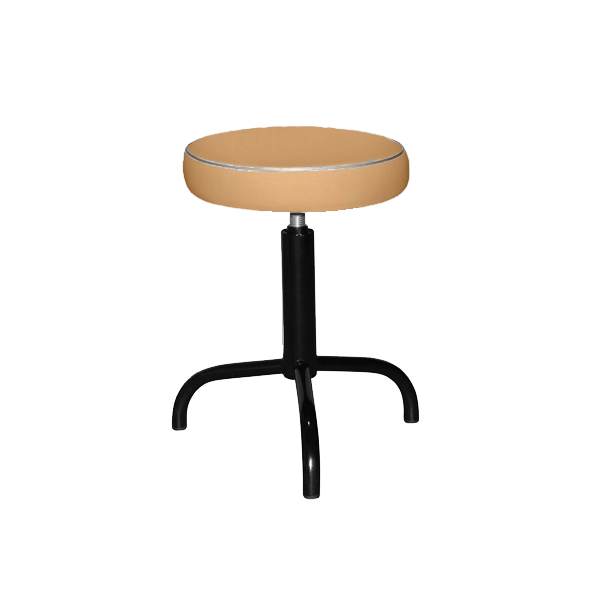 - Табурет Т04-1 с бежевой обивкой и чёрным металлическим каркасом сочетает в себе лёгкую элегантность и практичность. Такой цвет седалища делает изделие визуально тёплым и нейтральным, что позволяет ему гармонировать с разными интерьерными стилями: от домашнего рабочего уголка до офиса, салона красоты, учебной аудитории.