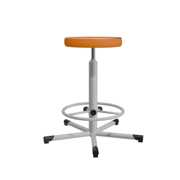 - Сиденье диаметром 330 мм обтянуто прочной оранжевой экокожей, устойчивой к износу, влаге и регулярной обработке антисептиками.