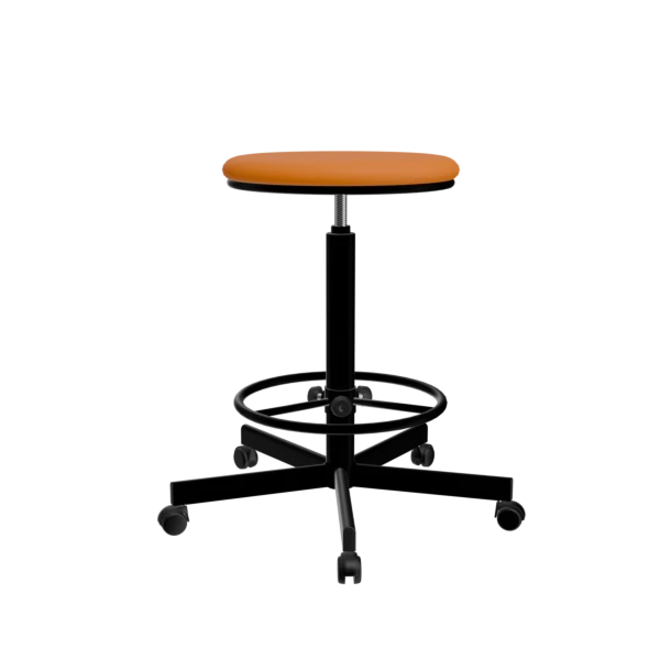 - Оранжевый табурет Т02/К с винтовой опорой и черным металлическим каркасом – практичное и стильное решение для офисов, косметологических кабинетов, а также дома.