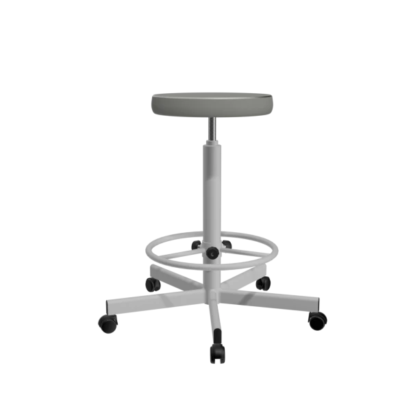 - Табурет на винтовой опоре с серой обивкой Т02-1/К и белым каркасом – практичное решение для лабораторий, офисов и салонов красоты.