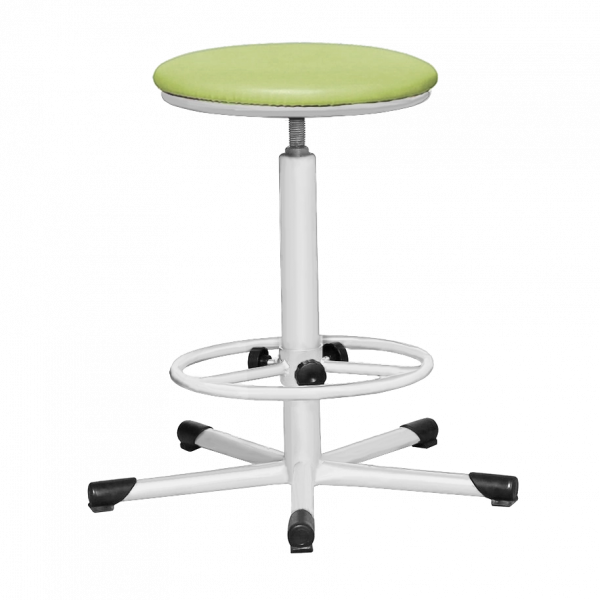 - Сиденье выполнено из прочной обивки светло-зеленого цвета, которая устойчива к износу и загрязнениям, легко чистится, что делает табурет идеальным для частого использования.