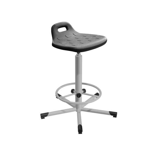 - Сиденье и спинка — формованные панели из влагостойкого материала с обивкой, легко очищаются, выдерживают регулярную дезинфекцию и кратковременное воздействие агрессивных сред. Спинка обеспечивает поддержку поясницы, сиденье прямоугольной формы — удобство при работе за верстаком или оборудованием.