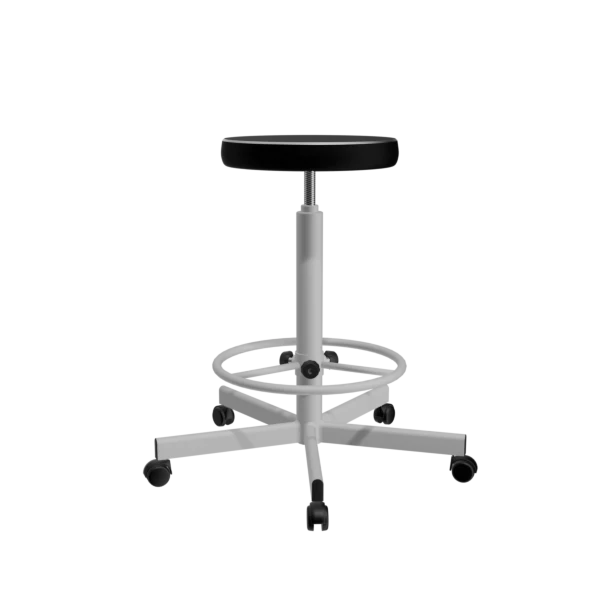 - Регулируемая высота от 590 до 730 мм позволяет настроить табурет под различные рабочие поверхности и обеспечивать комфортное сиденье для пользователей разного роста.