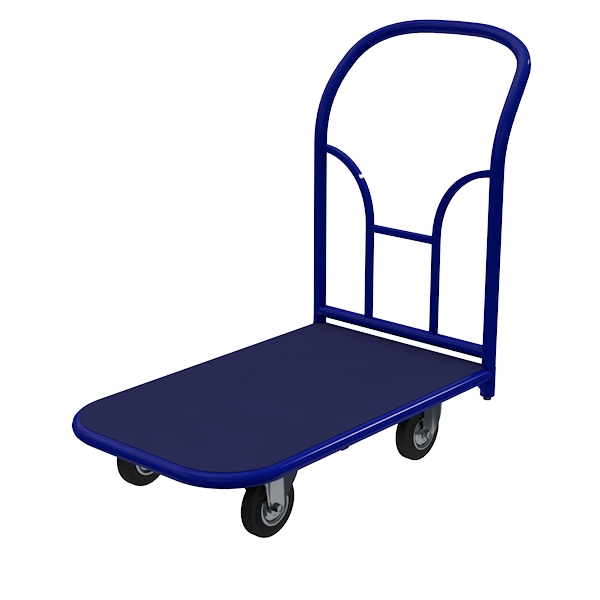 - Полимерная порошковая окраска тёмно-синего цвета позволяет использовать тележку на открытом воздухе при атмосферных осадках.