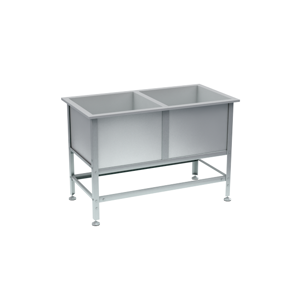 - Оборудована двумя одинаковыми мойками, выполненными из стали AISI 430 толщиной 0.7 мм.
