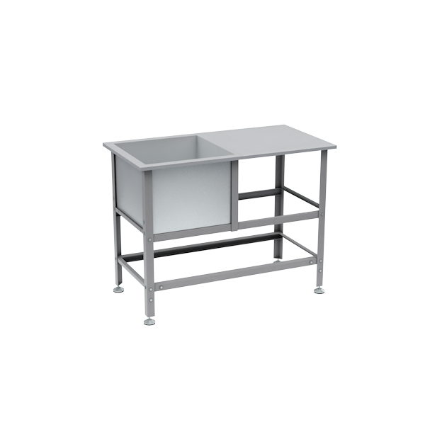 - Конструкция сборного типа состоит из каркаса, стола и ванны с одной раковиной.