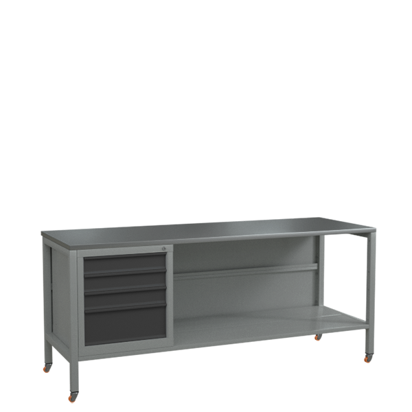 Верстак 2000 с колёсами и тумбой с 4 выдвижными ящиками