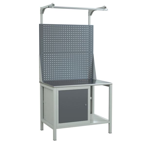 Верстак 1000 с двойным экраном и тумбой с распашной дверцей и полкой