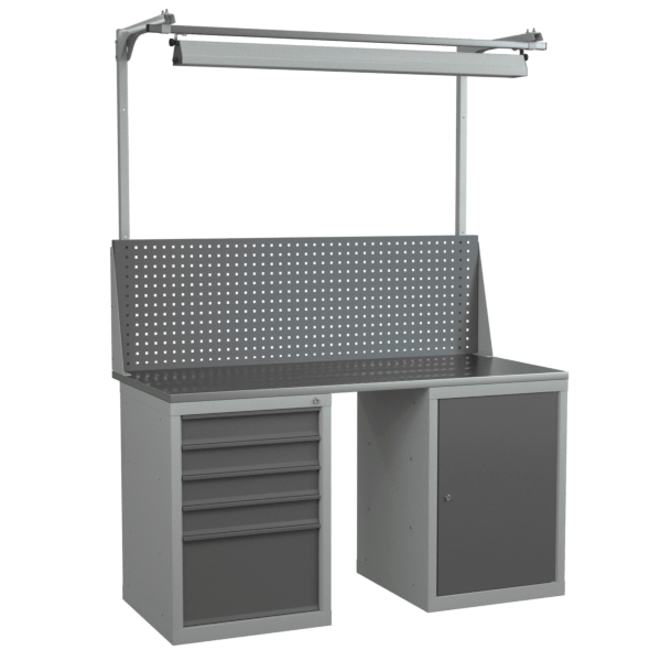 Верстак 1500 с тумбами, экраном с консолями и светильником