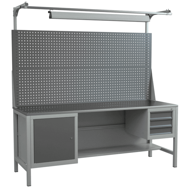 Верстак 2000 с полкой, светильником, двойным экраном и 2 тумбами