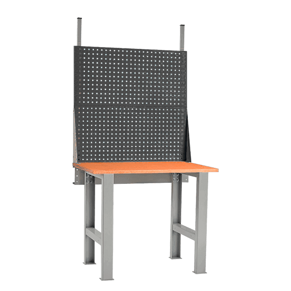 - На верстак устанавливается перфорированный экран, на который при помощи зацепов навешиваются аксессуары.