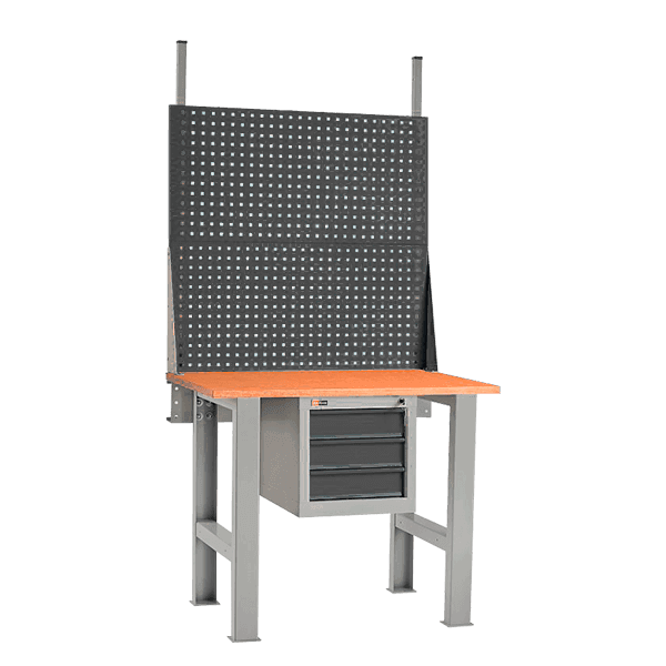 - Перфорированный экран и подвесная тумба с тремя выдвижными ящиками.