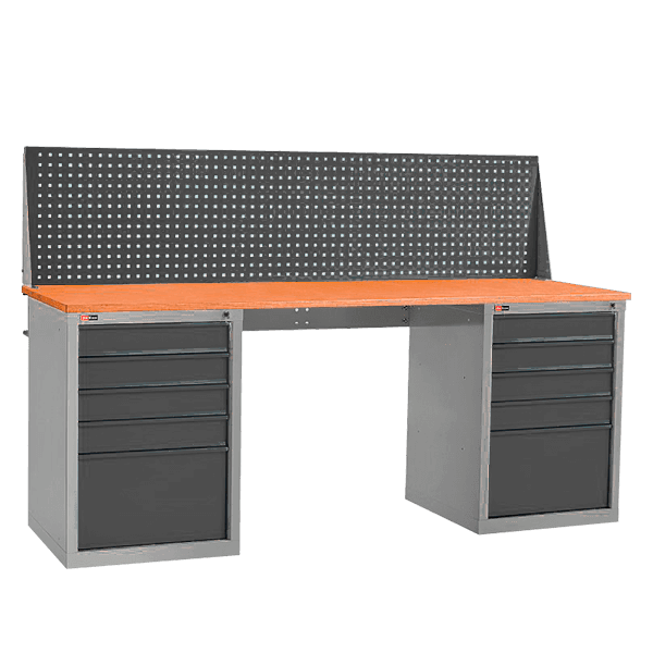 - Опоры для столешницы: 2 инструментальные тумбы с 5 выдвижными ящиками в каждой.